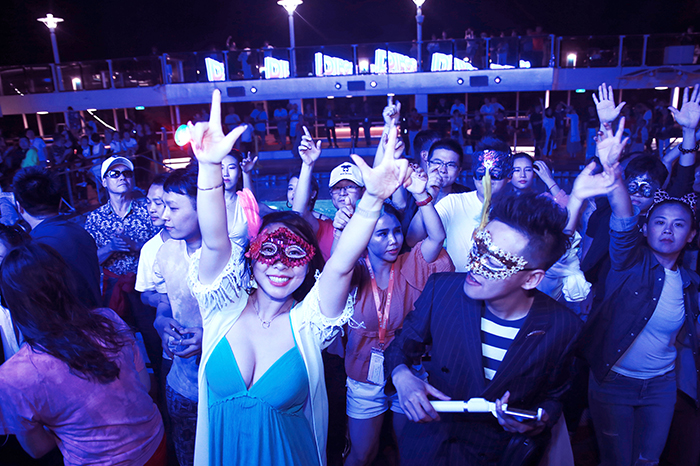 打造出最獨具格調(diào)的郵輪電音派對,仰望星光璀璨,感受海風(fēng)拂面。千人環(huán)繞露天泳池盡情狂歡,百大DJ現(xiàn)場助陣,在美酒的熏陶下縱情最動感的夜晚。