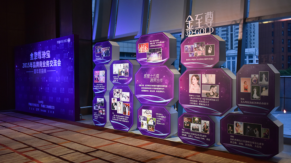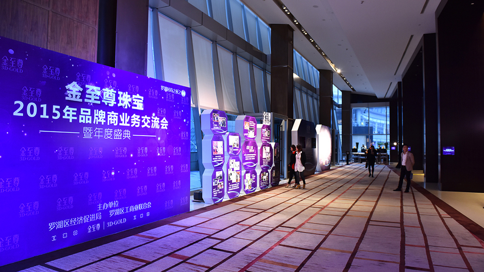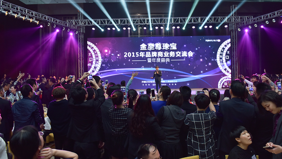 2015 年 12 月 3 日,金至尊品牌商業務交流 會暨年度盛典在深圳市羅湖區君悅酒店盛大舉行。 眾多國內知名品牌商、新聞媒體人物、行業知名 人士齊聚一堂,分享行業發展經驗,探討產業發 展趨勢。品牌產品形象代言人陳嘉桓,全能藝人 王祖藍也來到現場。金至尊珠寶產品在模特的專 業展示下熠熠生輝,將整個晚會推向高潮,也增 添了濃厚的時尚氣息。